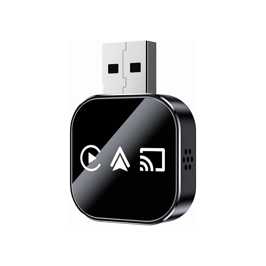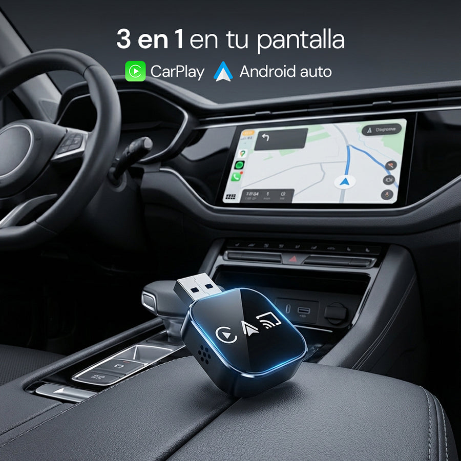 Es un adaptador inalámbrico 3 en 1 que se conecta al USB de tu auto para transformar el CarPlay con cable en una experiencia sin cables y más cómoda.