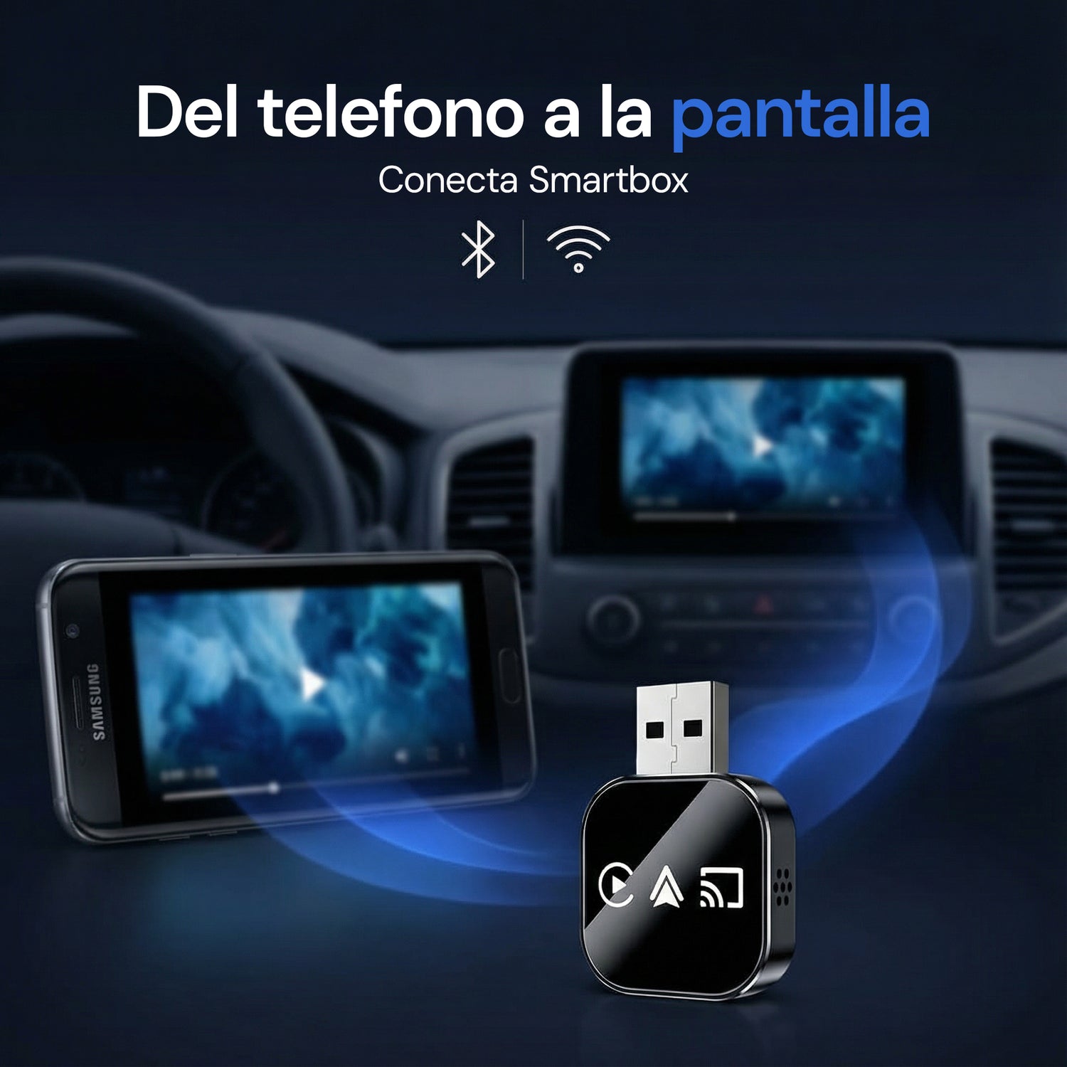 Es simple: conectas el adaptador al USB principal del auto (el mismo donde funciona CarPlay con cable), emparejas por Bluetooth la primera vez con el nombre tipo “Smart Box”, aceptas permisos y listo. Desde ahí, en el uso diario suele reconectarse automáticamente en pocos segundos, dependiendo del modelo del vehículo y del teléfono.