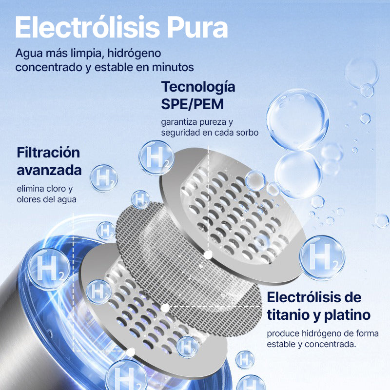 Nuestra tecnología de electrólisis avanzada con titanio y platino transforma el agua común en un antioxidante poderoso. La membrana SPE/PEM bloquea impurezas y cloro residual, entregándote solo lo mejor: agua rica en hidrógeno de alta pureza y estabilidad.